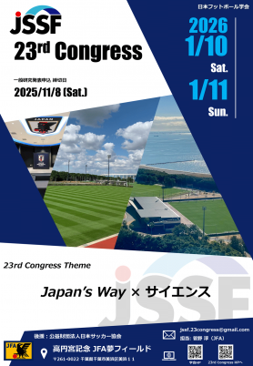 23rd Congress 開催決定!!日時:2026年1月10日・11日場所:高円宮記念JFA夢フィールド大会テーマ:Japan's Way × サイエンス